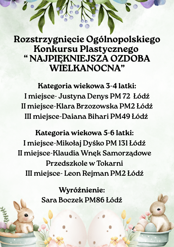 Rozstrzygnięcie Ogólnopolskiego Konkursu Plastycznego “NAJPIĘKNIEJSZA OZDOBA WIELKANOCNA”