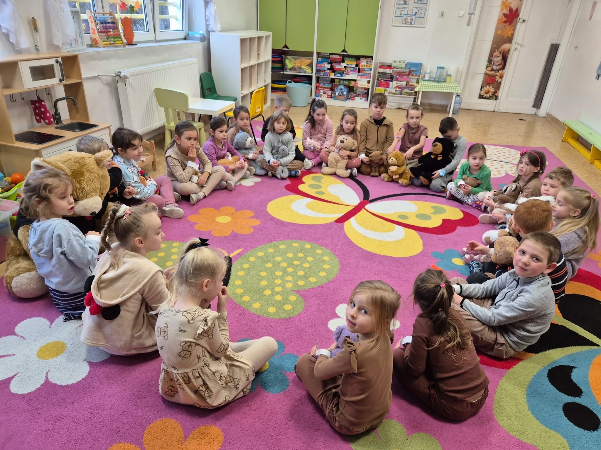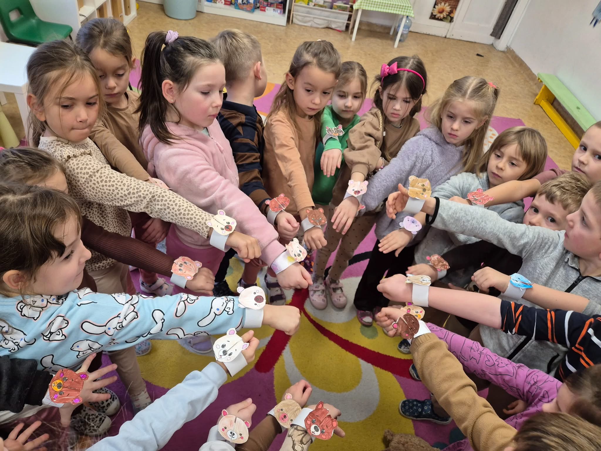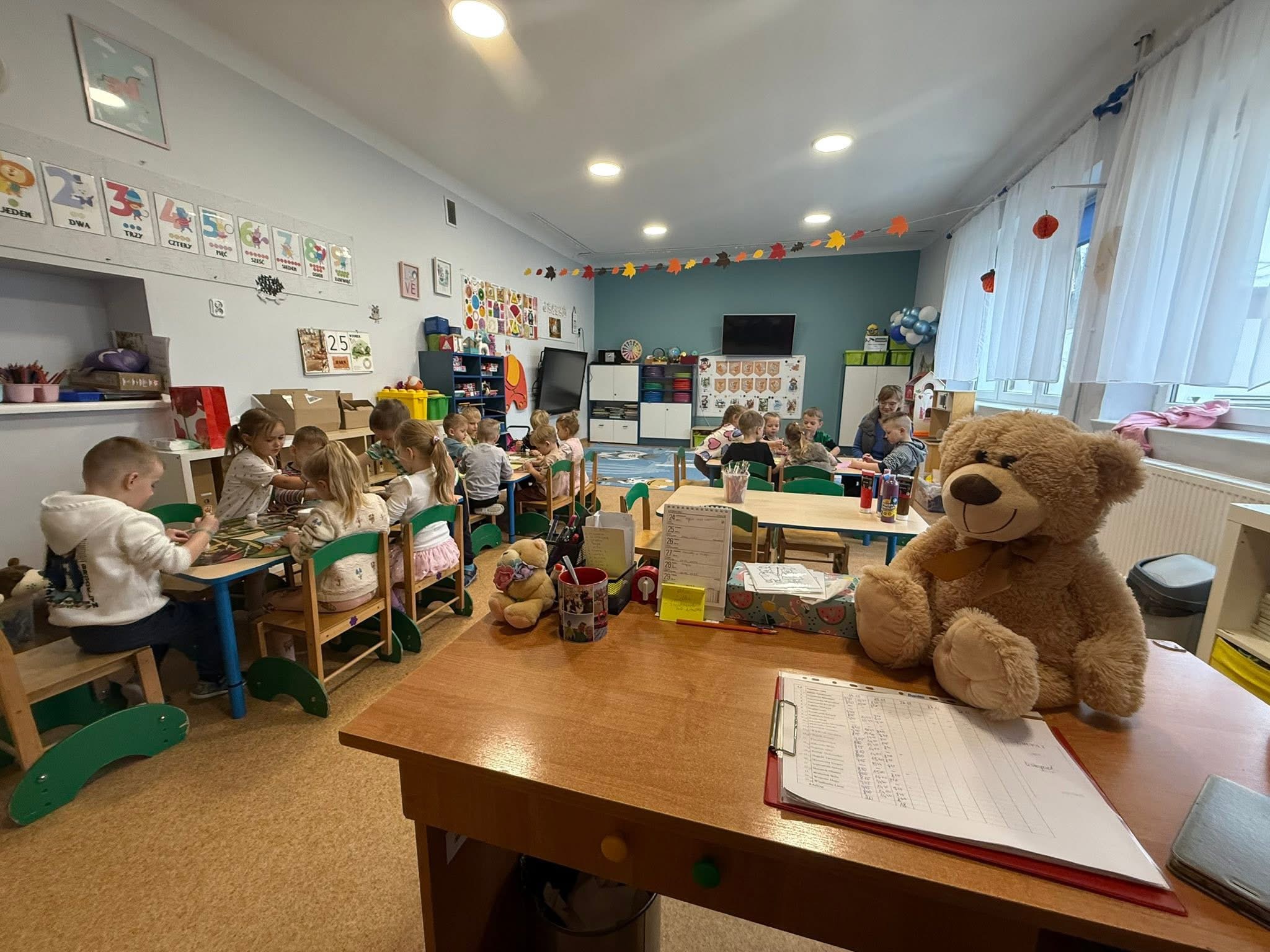 W przedszkolnych salach panowała radosna, przytulna atmosfera, a wszędzie towarzyszył śmiech i ciepło. To był dzień pełen uśmiechu, przyjaźni i dobrego humoru – dokładnie taki, jaki potrafią wyczarować tylko pluszowe misie!