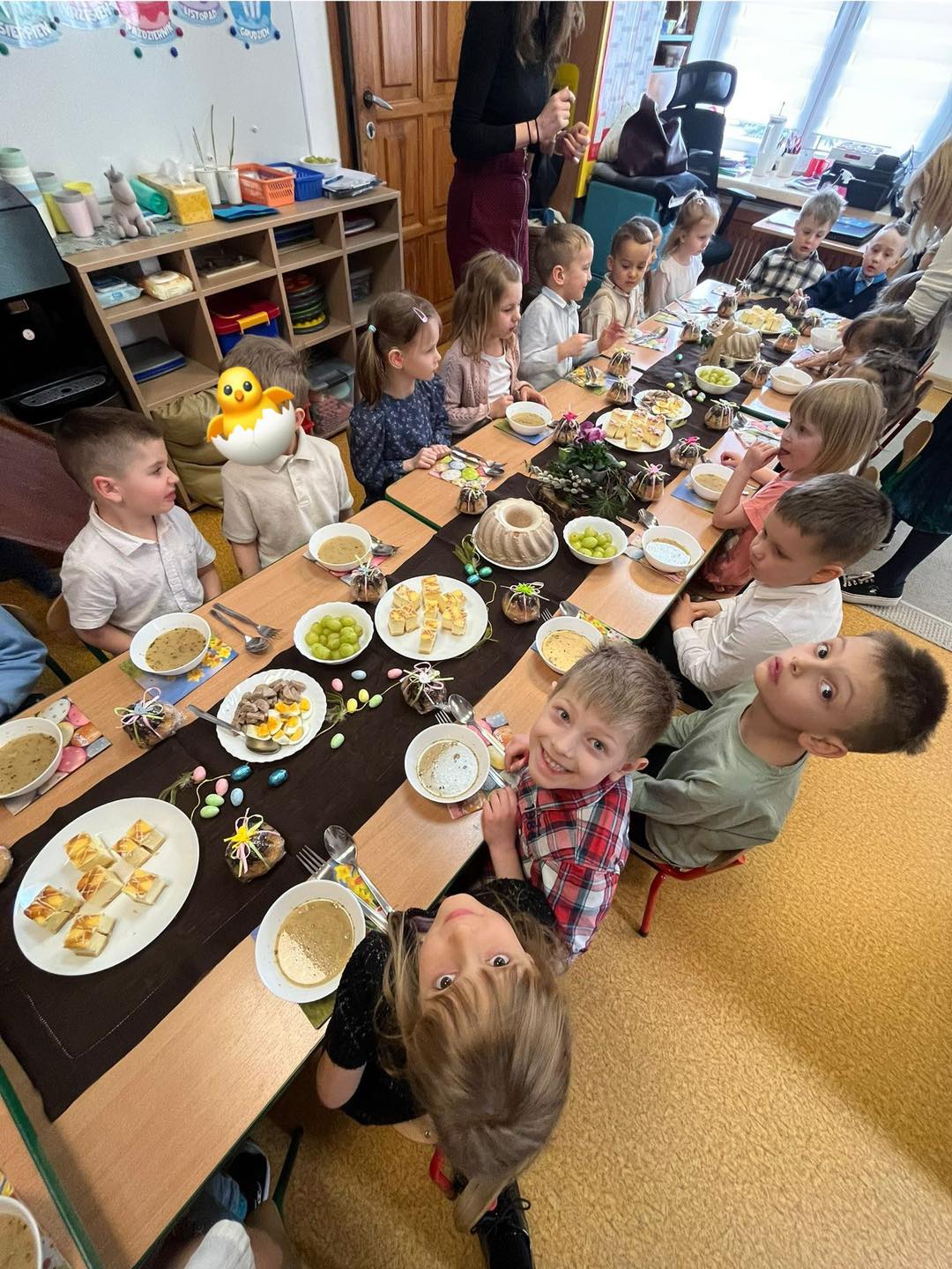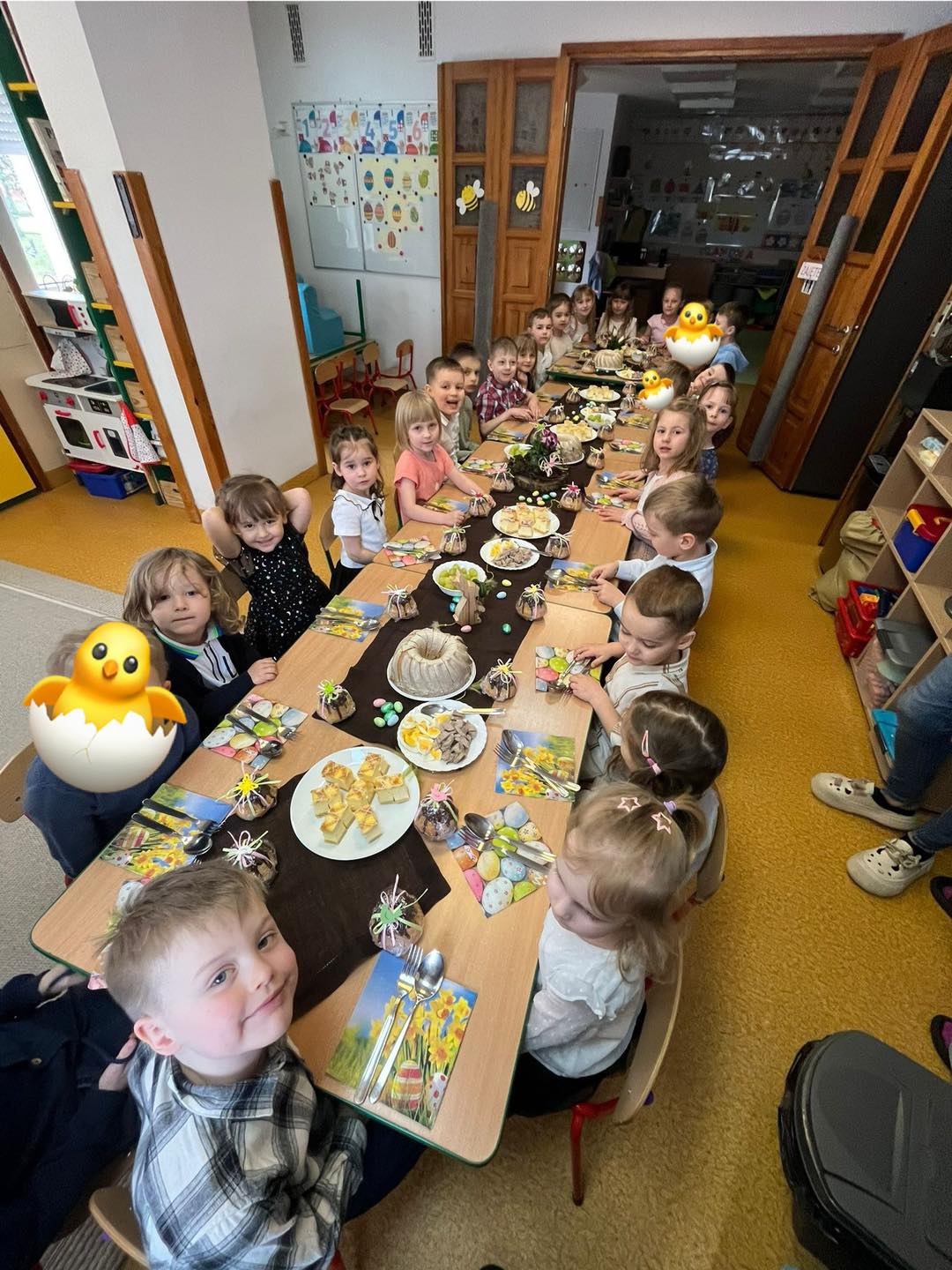 W naszym przedszkolu zapanowała dziś wyjątkowa, świąteczna atmosfera. Dzieci wspólnie usiadły do uroczystego obiadu wielkanocnego, dzieląc się radością, uśmiechem i dobrym słowem. Była to piękna okazja do rozmów o tradycjach wielkanocnych, budowania wspólnoty oraz nauki kulturalnego zachowania przy stole.